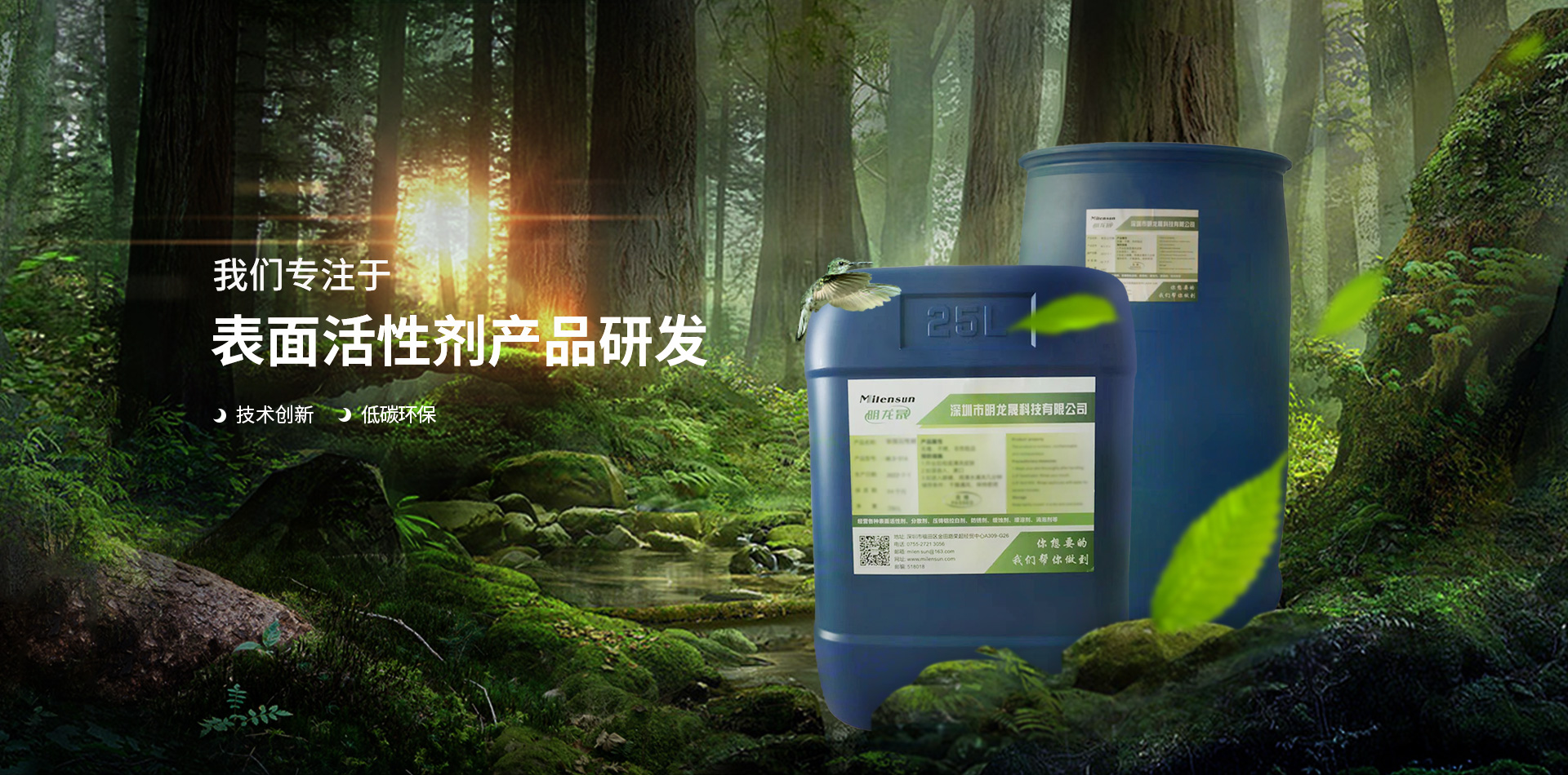 Milensun明龍晟,2021年成立于中國深圳,公司致力于校研成果轉換、深化校企合作發(fā)展、公司擁有一流的研發(fā)隊伍、多名高精尖人才匯聚于此,是一家集研發(fā)、生產、銷售為一體的創(chuàng)新型企業。主要生產工業清洗表面活性劑,商用清洗表面活性劑,低泡表面活性劑,無磷表面活性劑,防銹劑,增溶劑,壓鑄鋁拉白劑等產品。